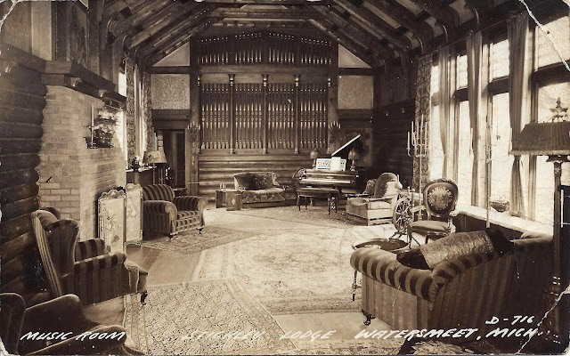 A smaller building for the caretaker, a garage, a large barn, an ice house and other smaller structures are scattered over the grounds. Of especial interest is a large Dutch windmill, which has been constructed along the same type as the other buildings. It is located near the main lodge and has a picturesque appearance. A private electric plant provides the the light and power for the various buildings. The latest type of machinery is used at the power plant and as a result Mr. Stickley always has plenty of electricity for various purposes. WILD LIFE DELIGHTS HIM. Mr. Stickley is a conservationist, and nothing delights him more then to see animals in their wild stages. A special cement pond is occupied by wild mallards, Egyptian ducks and other fowl. The caretaker has been instructed by Mr. Stickley to see that the birds are properly cared for at all times. Mr, Stickley is now constructing a building where Chinese pheasants and other members of that family may maintain headquarters. "I would rather see the wild birds flying than to kill even one of them," said Mr. Stlickley. "I love wild animals. Even the deer come up to my lodge, and if you could have seen my garden this fail you would have imagined it had been visited by marauders. But the deer and other animals are welcome at all times. "See those large birds?" said Mr. Stickley, as he pointed to two unusual looking ducks. "They are Egyptian ducks. I do not believe there are any other birds of this kind in the vicinity. I hope to add other birds of this type to my present collection as soon as I can get permission from the state. WILL HAVE GOLF COURSE. Workmen are now constructing a nine hole golf course on tho grounds which when completed, will be ideal for any golfer. It is on this course that Mr. Stickley hopes to spend many enjoyable hours next summer when he comes here for his vacation. The work of a landscape gardener together with the natural beauty of the grounds will make the setting a beautiful one. It is proper that Mr. Stickley should be interested In Gogebic county, for he is the first timber owner in the county who has made a donation to the park system, When on a visit to Gogebic county a short time ago State Park Commissioner P. J. Hoffmaster(as in P. J. Hoffmaster State Park) classed the Stickley park on Lake Gogebic as the most beautiful park in the state of Michigan. A lake frontage of 89 acres running for three-fourths of a mile was donated to the county several years ago by Stickley for $1. Additional land has been purchased by the park board. The entire property was turned over by the county to the state, and now is known as the Stickley Park. ***Unknown to me when or how the land was adsorbed into Lake Gogebic State Park.*** If there is one thing which Mr. Stickley does not want it is credit for the donation. He disclaims any personal credit for the gift and when asked about it endeavors to change the subject. "In time to come when people will not know what virgin timber is, they can constantly visit this park," said Mr. Stickley. "The gift was made for future generations of the county and the state. If I, through this gift, could be instrumental in having a road constructed around Gogebic lake, I would consider myself well repaid for the gift." Both Mr. and Mrs. Stickley are ideal hosts. At their dinner table almost daily, some friend is seated. In the future, when the roads have been completed, more people of the county will have an opportunity to visit a summer home, which for a time was considered as a possible vacation summer white house by President Coolidge. Mr. and Mrs. Stickley left this week for their home at Grand Rapids, but will return within a few weeks to entertain a few friends from Grand Rapids during the hunting season after which they will leave for California to spend the winter. IRONWOOD DAILY GLOBE NOVEMBER 1, 1927 Albert poured over $330,000 into the property. That's over $4.5 million today! Albert died less then a year later on October 20, 1928. Mrs. Stickley carried on for a few years entertaining as usual. I don't know all the circumstances but presume the money that was left was either not enough to support her lifestyle or was lost during the crash of 1929.