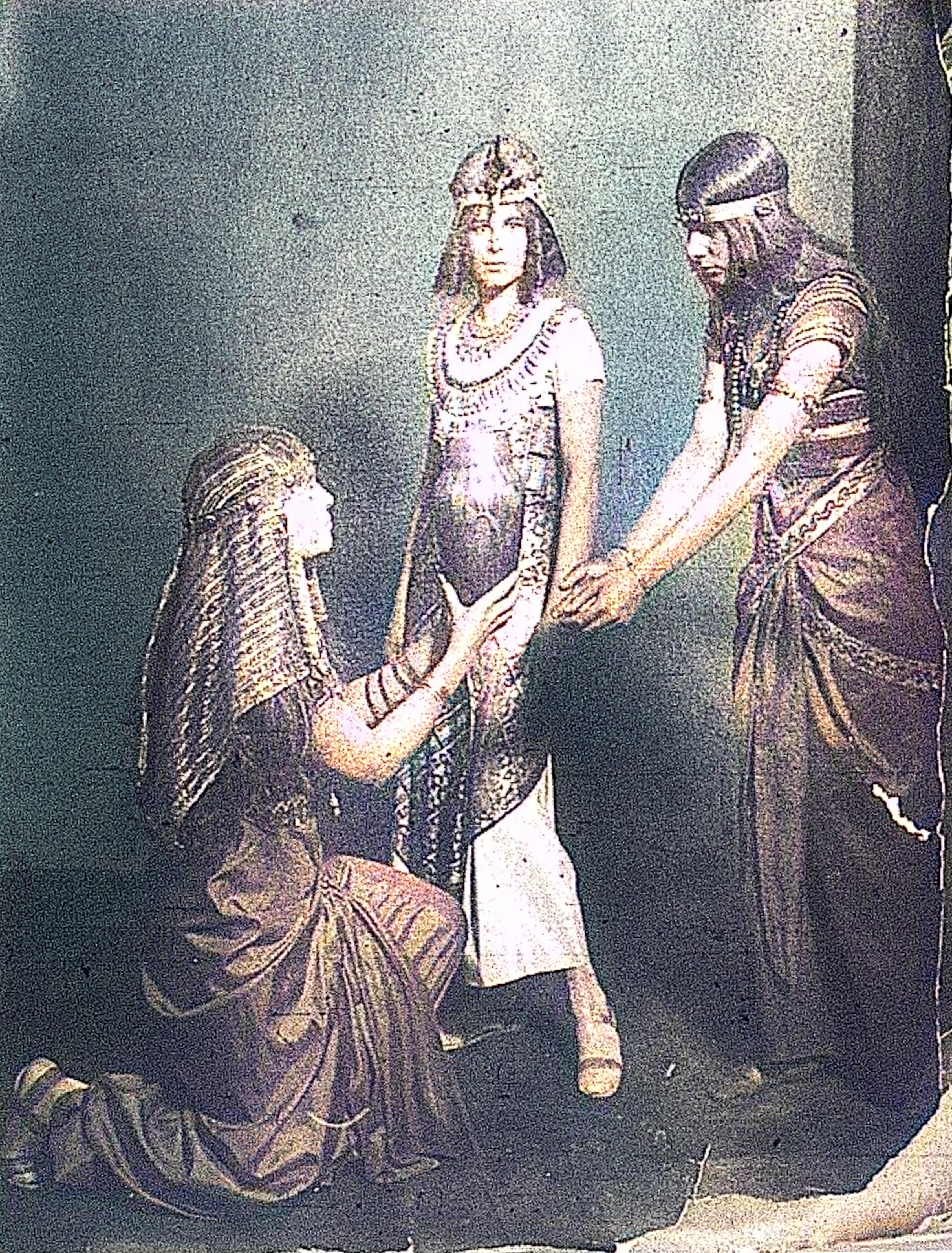 A slave driver whom Cleopatra had fancied at one time, was commanded by her to drink poison. He died and was taken away to make room for rugs, which were deposited before her. From the bundle of rugs emerged a Hindu dancer, Ruth St.Denis, clad in yellow gauze, who did one of her dances, full of the beauty and mystery of the East.